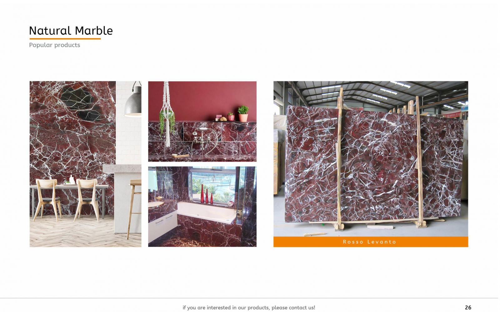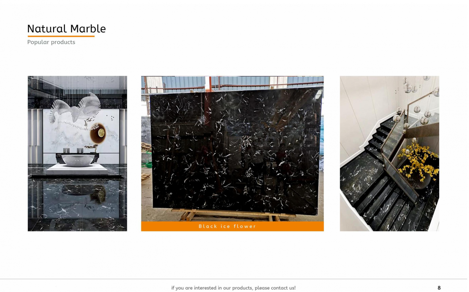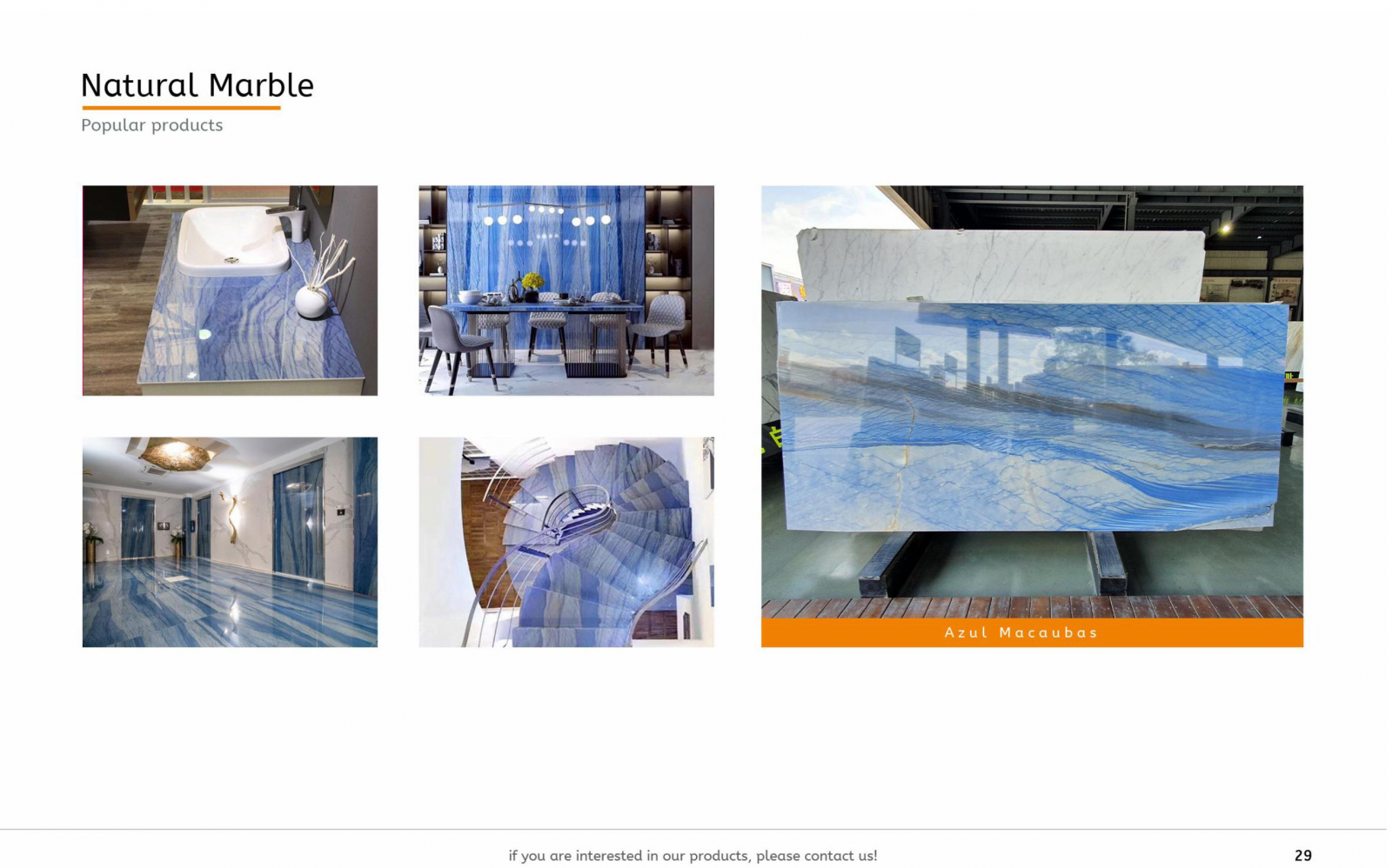 Choosing our natural marble means investing in superior craftsmanship and enduring style. Contact us today to explore our marble collection and experience the refined quality that transforms any space into a luxurious statement.