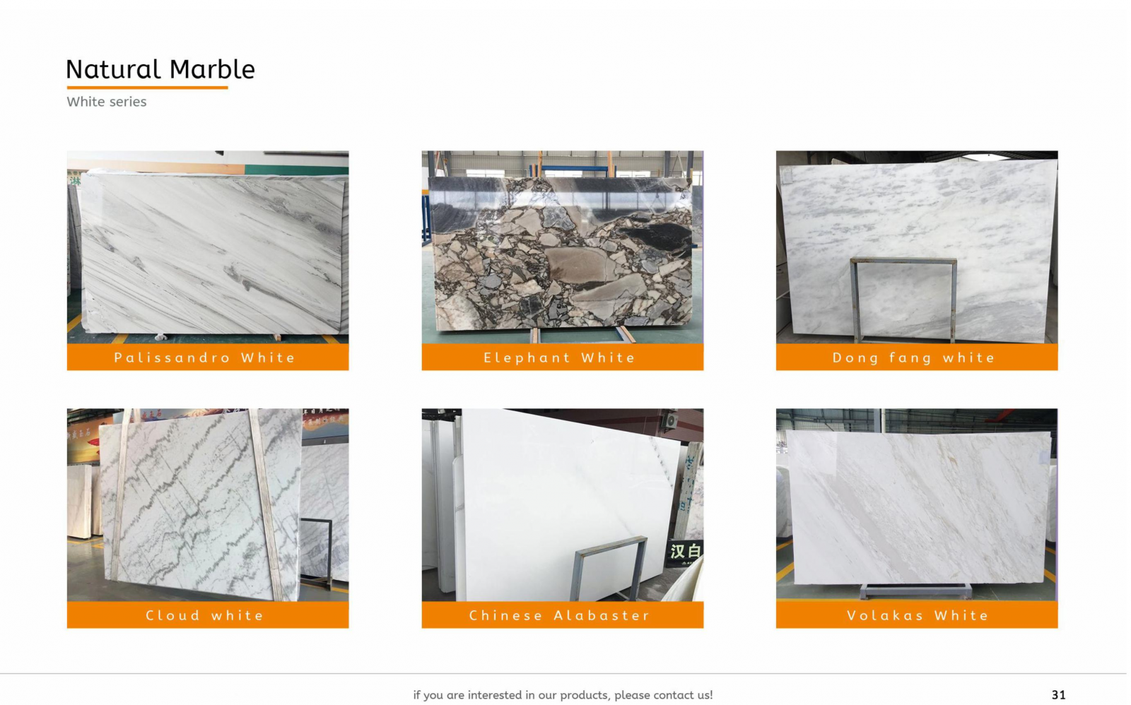 Marble is a premium natural stone known for its stunning veining patterns and elegant appearance. Widely used in interior and exterior designs, marble enhances spaces such as kitchen countertops, bathroom vanities, flooring, and wall cladding with its timeless beauty. We offer a wide selection of marble varieties, including classic white Calacatta, rich dark Emperador, and exquisite Volakas white marble from Greece, each sourced from renowned quarries around the world.